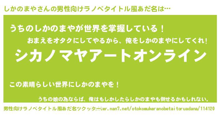 | 胡散臭い通販商品みたいなあだ名 | 『億万長者になれる霊験あらたかなお札…その名も「しかのまや」』 |