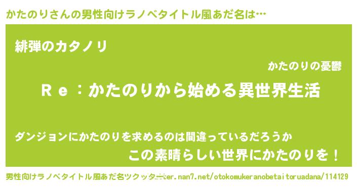 | 女子向けラノベタイトル風あだ名 | 『かたのりストレイドッグス』 |