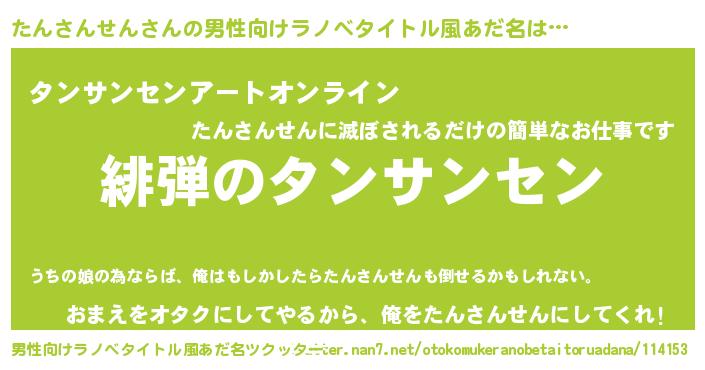 | ヒーロー風カッコイイあだ名 | 『スーパータンサンセン』『天弓騎士タン』 |