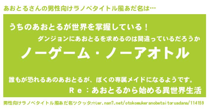 | 女子向けラノベタイトル風あだ名 | 『死神あおとるの再婚』 |