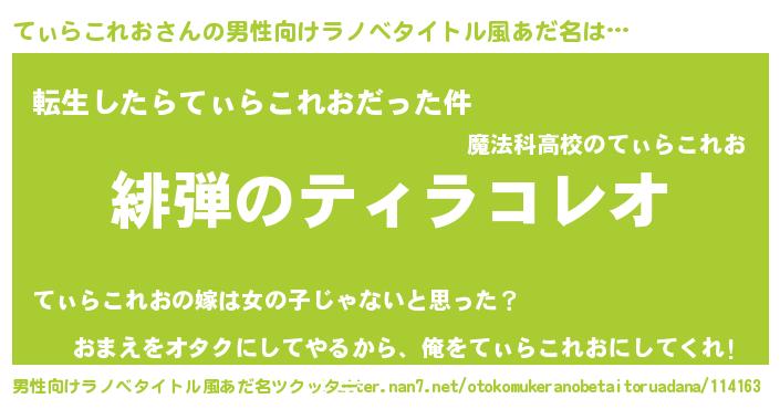 | 胡散臭い通販商品みたいなあだ名 | 『100人中100人が認めたイリジウム磁石…その名も「てぃらこれお」』 |