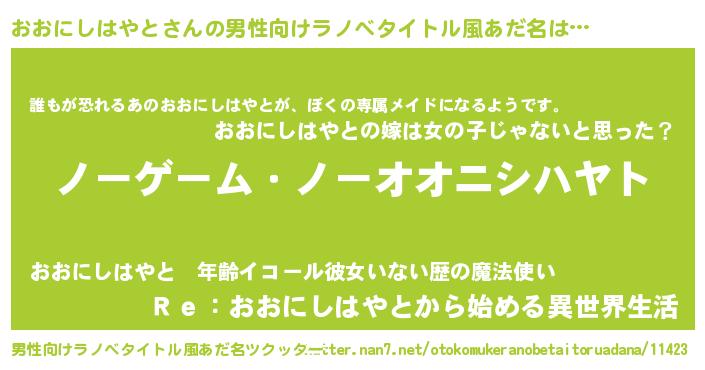 | ヘコむあだ名 | 『おおにしはやと(爆)』『おおぷりん』 |