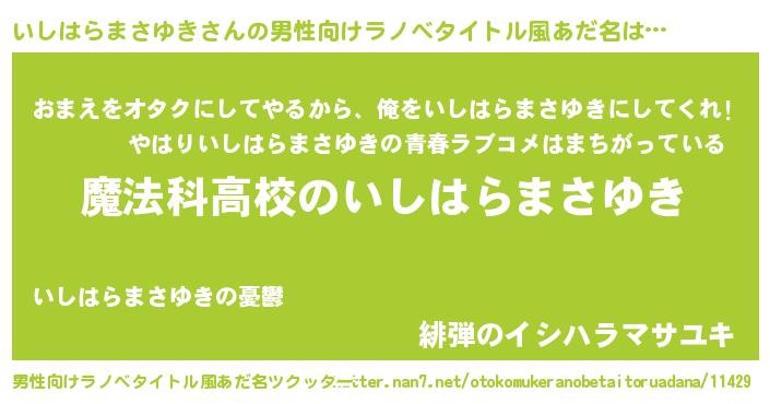 | 意味不明あだ名 | 『自称いしはらまさゆき』 |