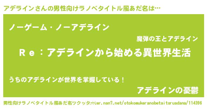 | 女子向けラノベタイトル風あだ名 | 『闇のアデライン』『アデライン恋絵巻』 |