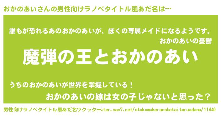 | 女子向けラノベタイトル風あだ名 | 『乙女ゲームの破滅フラグしかない悪役おかのあいに転生してしまった…』 |