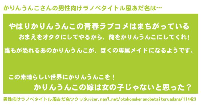 | 女子向けラノベタイトル風あだ名 | 『異世界でカフェかりんうんこを開店しました。』 |