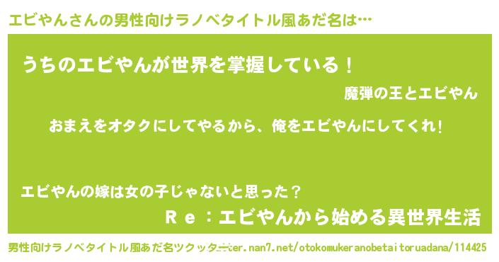 | 胡散臭い通販商品みたいなあだ名 | 『100人中100人が認めたマグネット磁石…その名も「エビやん」』 |