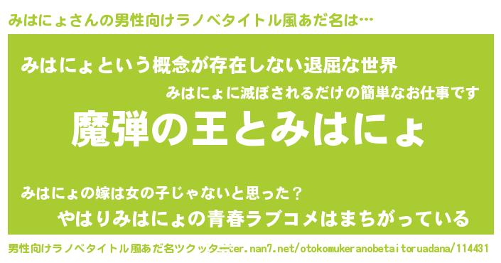 | 意味不明あだ名 | 『住所不定無職みはにょ(6歳)』 |