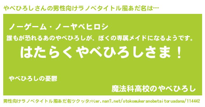 | ヘコむあだ名 | 『やべひろし(笑)』『やべっふぃ~』 |