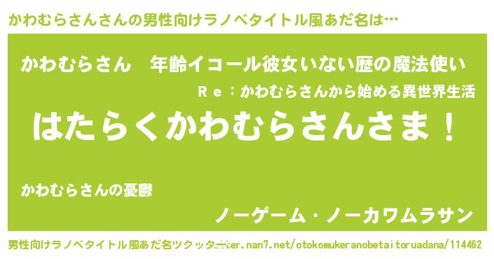 | ヘコむあだ名 | 『かわにゅー』『かわむらさん(爆)』 |