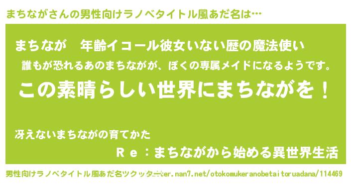 | 意味不明あだ名 | 『住所不定無職まちなが(85歳)』 |