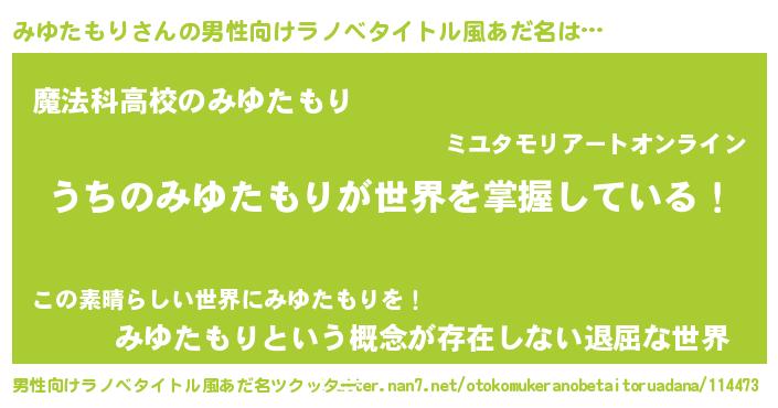 | 女子向けラノベタイトル風あだ名 | 『男装みゆたもりの憂鬱な任務』 |