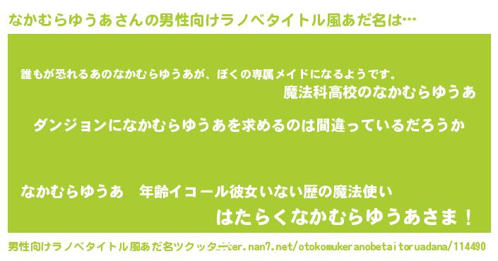 | 女子向けラノベタイトル風あだ名 | 『なかむらゆうあの卵を拾いまして』 |
