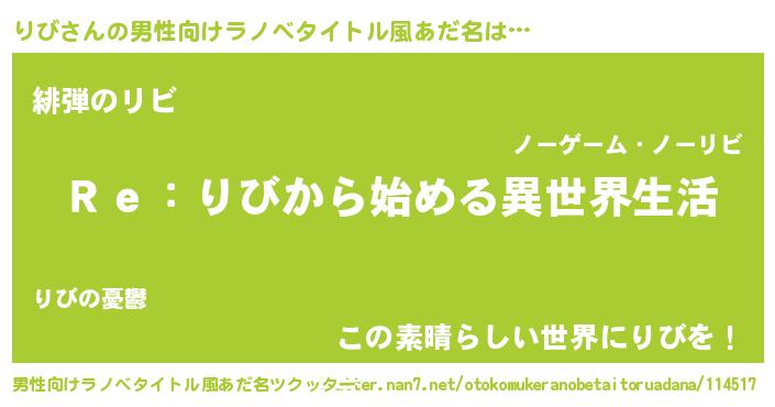 | 女子向けラノベタイトル風あだ名 | 『闇のりび』『シンデレラりび家の靴箱館』 |