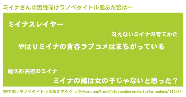 | 胡散臭い通販商品みたいなあだ名 | 『世界が平和になる高級そうな絵画…その名も「ミイナ」』 |