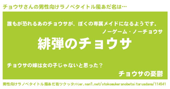 | ヒーロー風カッコイイあだ名 | 『ネオチョウサ』『スーパーチョウサ』 |
