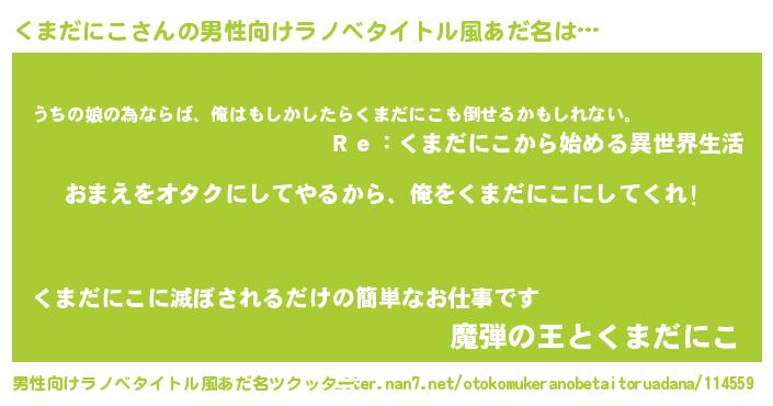| 女子向けラノベタイトル風あだ名 | 『くまだにこ夫妻のなれそめ』 |