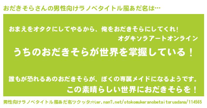 | 女子向けラノベタイトル風あだ名 | 『男装おだきそらの憂鬱な任務』 |