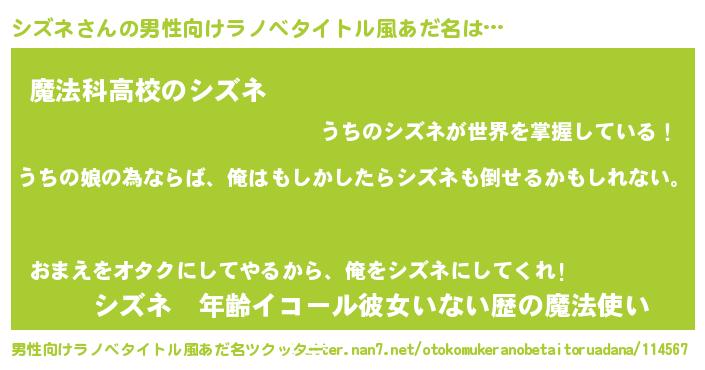 | 女子向けラノベタイトル風あだ名 | 『シズネの婚約者』 |