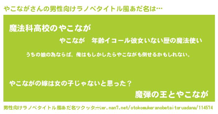 | 意味不明あだ名 | 『やこながフォーエバー』『自称やこなが』 |