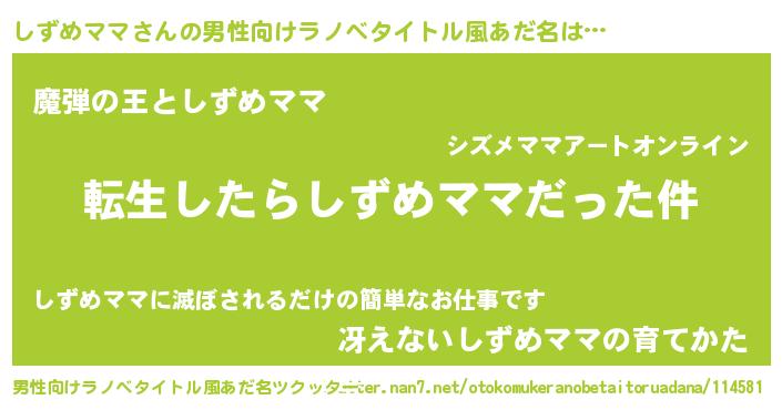 | 女子向けラノベタイトル風あだ名 | 『婚約破棄系悪役しずめママに転生したので、保身に走りました。』 |