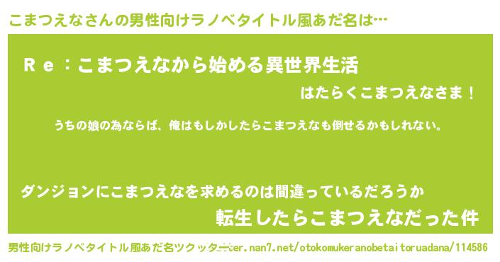 | 女子向けラノベタイトル風あだ名 | 『こまつえなの婚約者』『闇のこまつえな』 |
