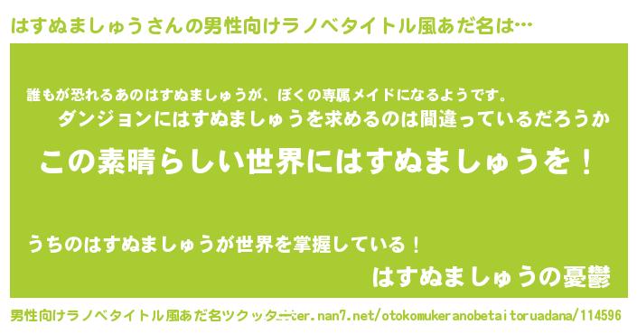 | 胡散臭い通販商品みたいなあだ名 | 『あなたにだけ特別に提供する世界で10本だけ現存している希少なブランデー…その名も「はすぬましゅう」』 |