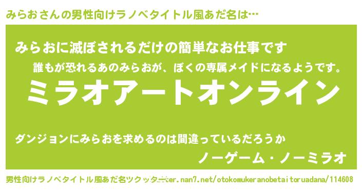 | 女子向けラノベタイトル風あだ名 | 『みらお姫と円卓の騎士』『みらお恋絵巻』 |