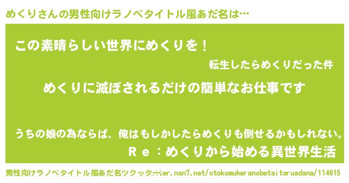 | 意味不明あだ名 | 『住所不定無職めくり(7歳)』『自称めくり』 |