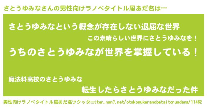 | 意味不明あだ名 | 『永久保存さとうゆみな』 |