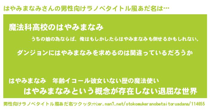 | 女子向けラノベタイトル風あだ名 | 『はやみまなみは平凡を望む』 |