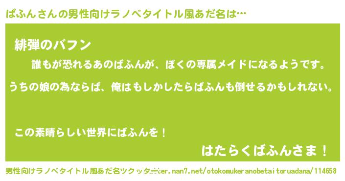 | ヒーロー風カッコイイあだ名 | 『ウルトラばふんマン』『ネオバフン』 |