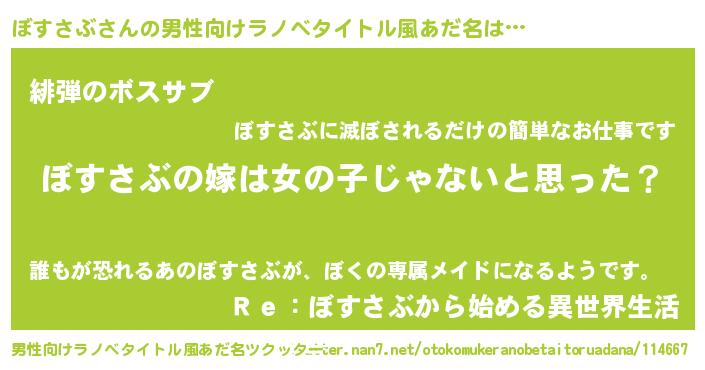 | 胡散臭い通販商品みたいなあだ名 | 『全米が絶賛したサプリメント…その名も「ぼすさぶ」』 |