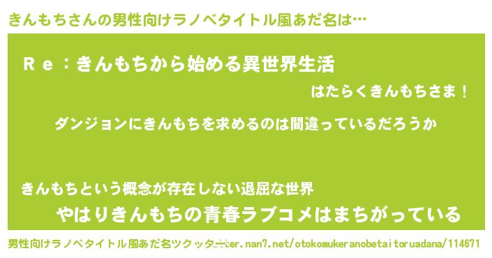 | 女子向けラノベタイトル風あだ名 | 『きんもちは平凡を望む』『闇のきんもち』 |