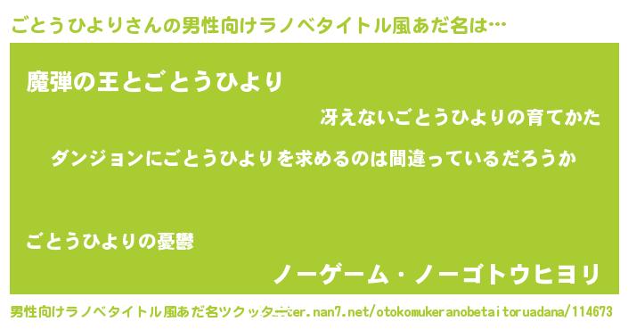 | 意味不明あだ名 | 『とにかく怪しいごとうひより』 |