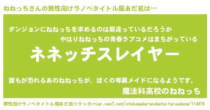 | ヒーロー風カッコイイあだ名 | 『暗黒騎士ネネ』『ウルトラ戦士ネネッチ』 |
