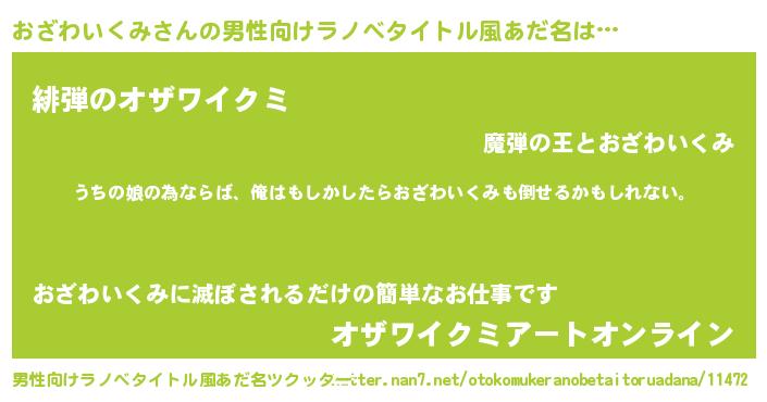 | 女子向けラノベタイトル風あだ名 | 『おざわいくみの婚約者』 |