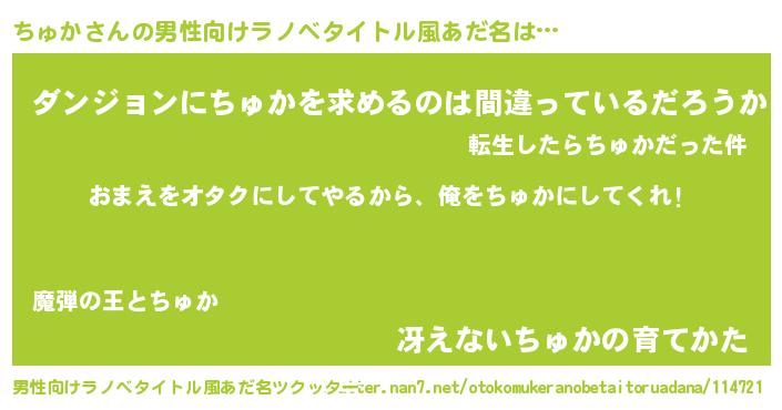 | ヒーロー風カッコイイあだ名 | 『正義の使者ちゅか』『暗黒騎士チュ』 |