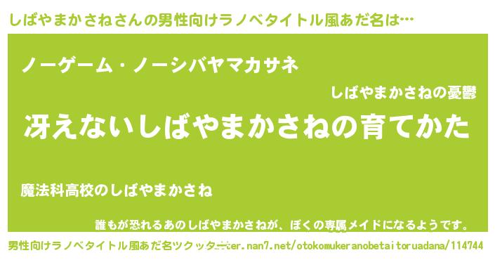 | 女子向けラノベタイトル風あだ名 | 『シンデレラしばやまかさね家の靴箱館』 |