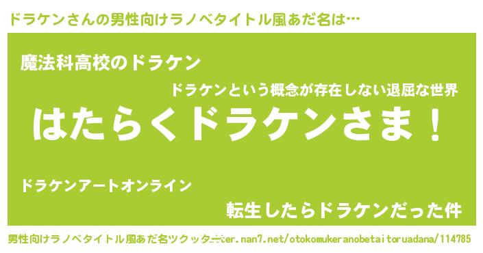| 意味不明あだ名 | 『自称ドラケン』『たけのこ科ドラケン属』 |