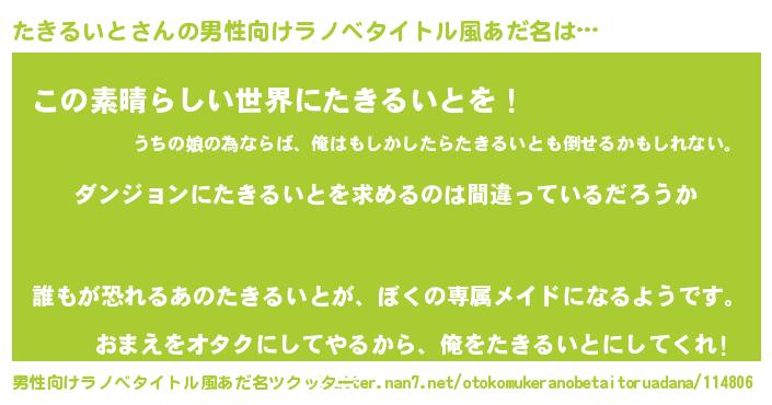 | 女子向けラノベタイトル風あだ名 | 『たきるいとは平凡を望む』 |
