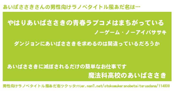あいばささきさんの男性向けラノベタイトル風あだ名をツクッター!