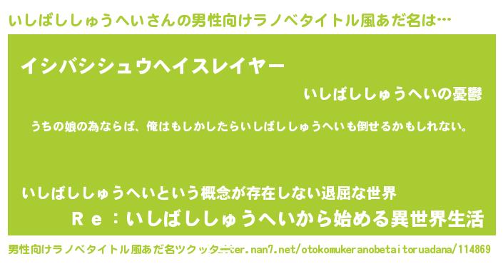 | 意味不明あだ名 | 『いしばししゅうへいフォーエバー』 |