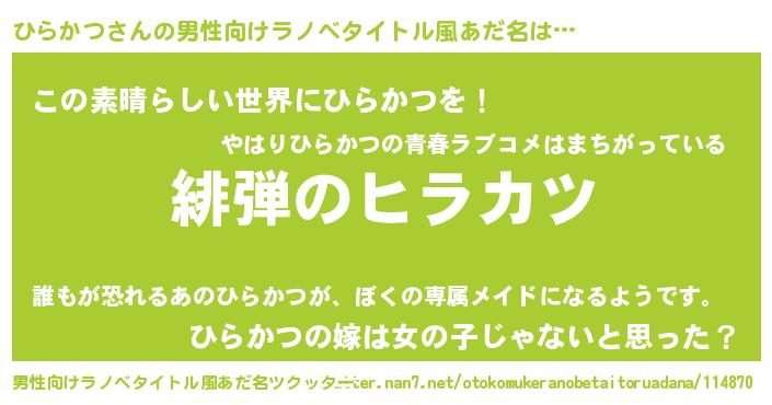 | 女子向けラノベタイトル風あだ名 | 『シンデレラひらかつ家の靴箱館』 |