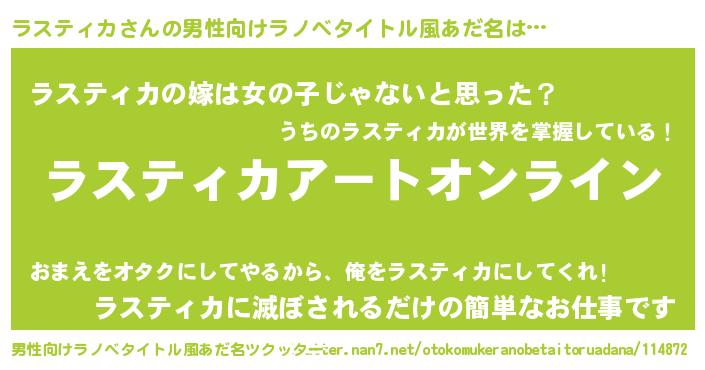 | 胡散臭い通販商品みたいなあだ名 | 『億万長者になれるブレスレット…その名も「ラスティカ」』 |