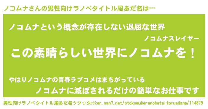 | 意味不明あだ名 | 『住所不定無職ノコムナ(8歳)』 |