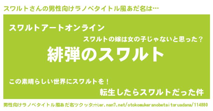 | ヒーロー風カッコイイあだ名 | 『スーパースワルト』『幻影騎士スワ』 |