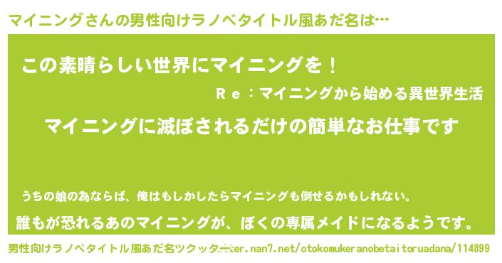 意味不明あだ名 | 『住所不定無職マイニング(95歳)』 |
