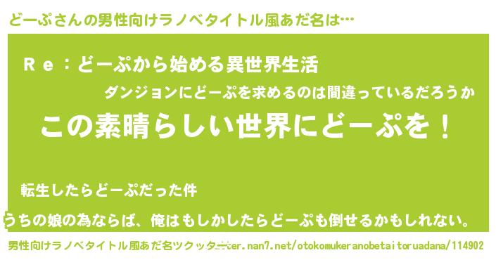 | 意味不明あだ名 | 『住所不定無職どーぷ(74歳)』『自称どーぷ』 |