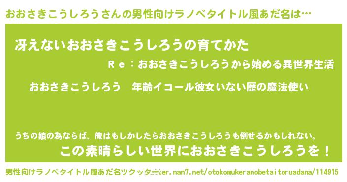 | 胡散臭い通販商品みたいなあだ名 | 『あなたにだけ特別に提供する限定10本のレアな日本酒…その名も「おおさきこうしろう」』 |